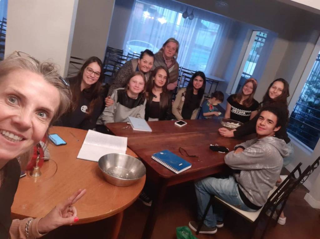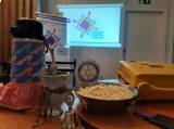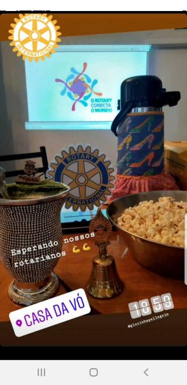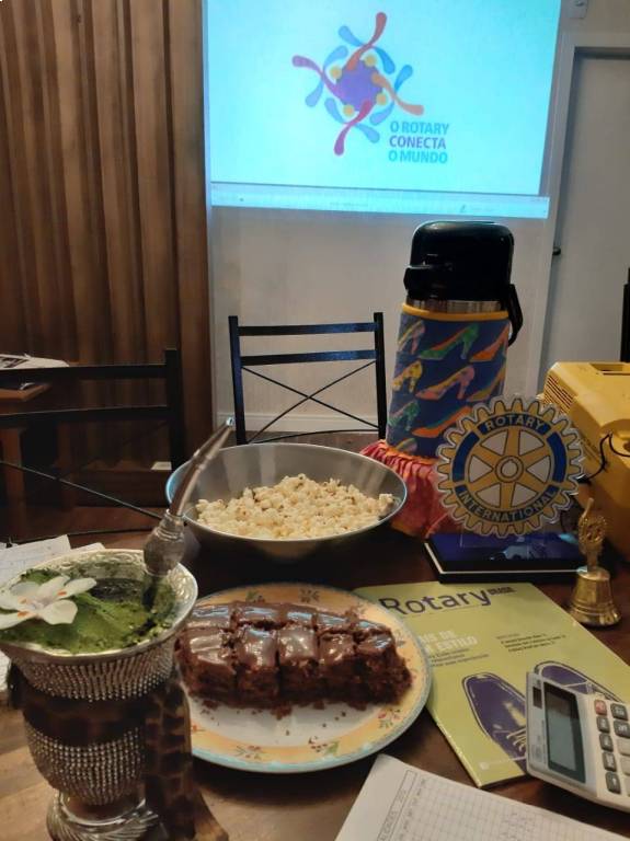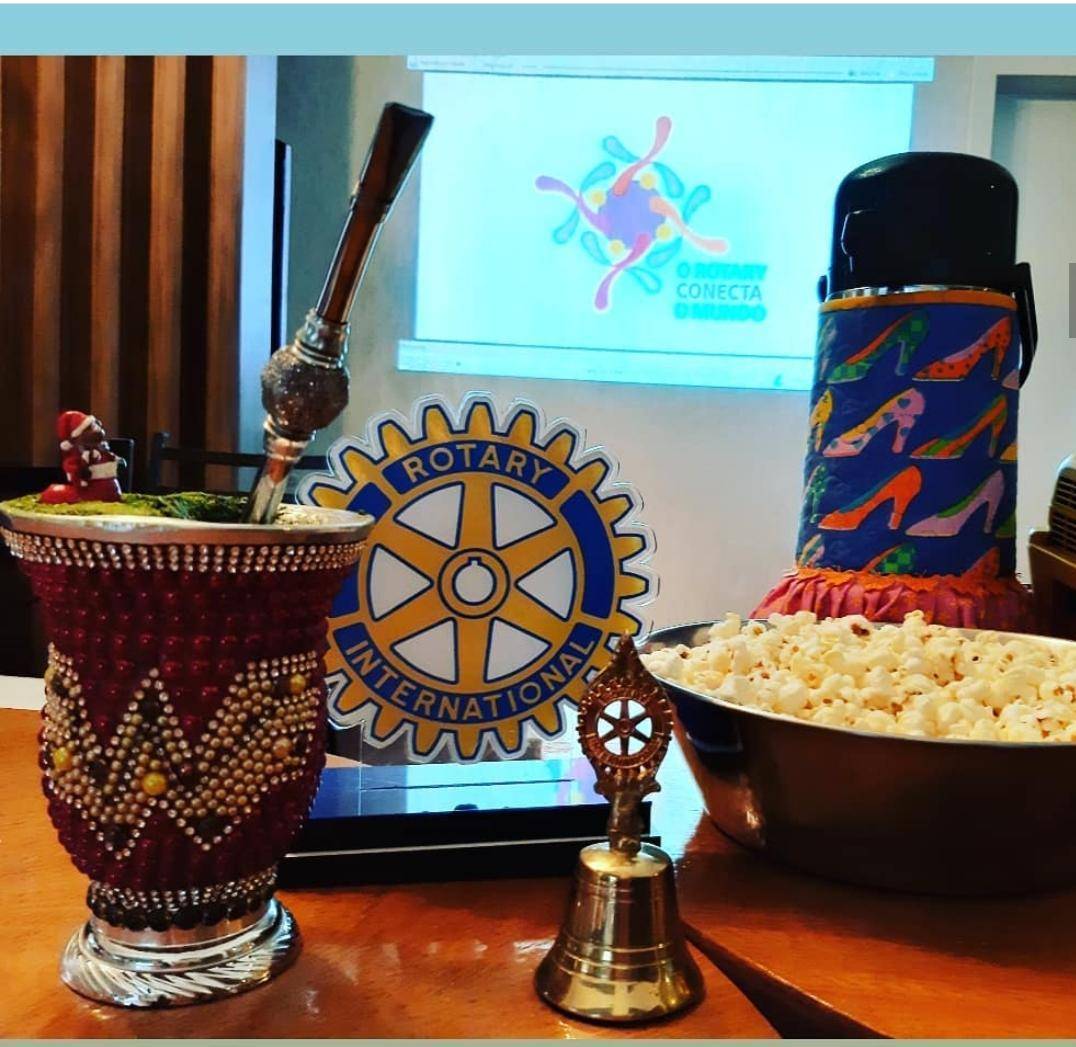 Muito legal as conexões que podem acontecer dentro do Rotary. As reuniões sempre tiveram pipoca e chimarrão, uma bebida típica do nosso Estado. O Clube fez essa linda homenagem ao nosso Presidente de RI Mark Maloney e sua esposa Gay Maloney.