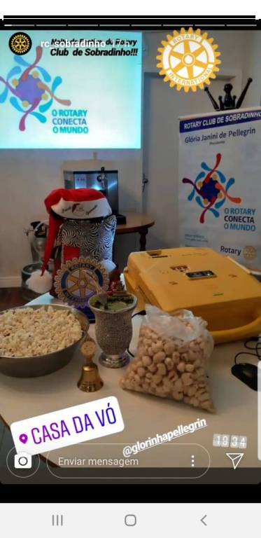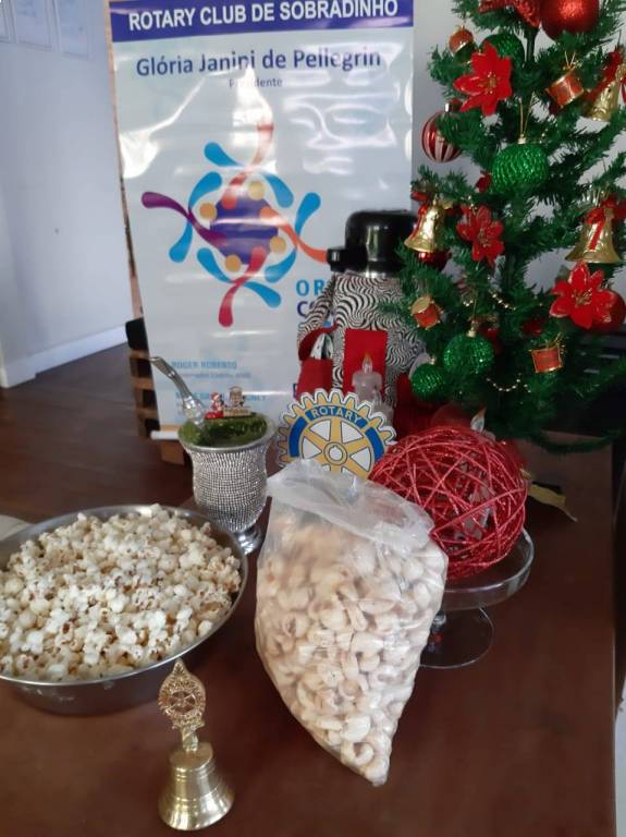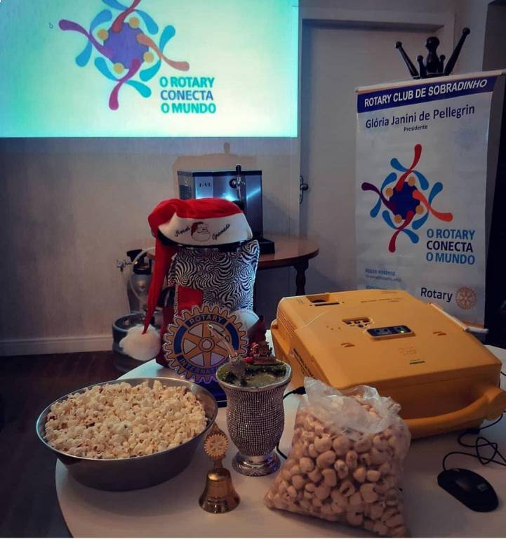Coincidência ou não, o Rotary Club de Sobradinho do Distrito 4660, no Estado do Rio Grande do Sul, Brasil, tem sempre pipoca em suas reuniões, levada pela Presidente do Clube Glória Janini Pellegrin, que é filha de uma família que produz e embala a deliciosa pipoca doce em sua cidade. Quando eu e a Jaqueline Roberto visitamos o clube achamos fantástico essa coincidência.